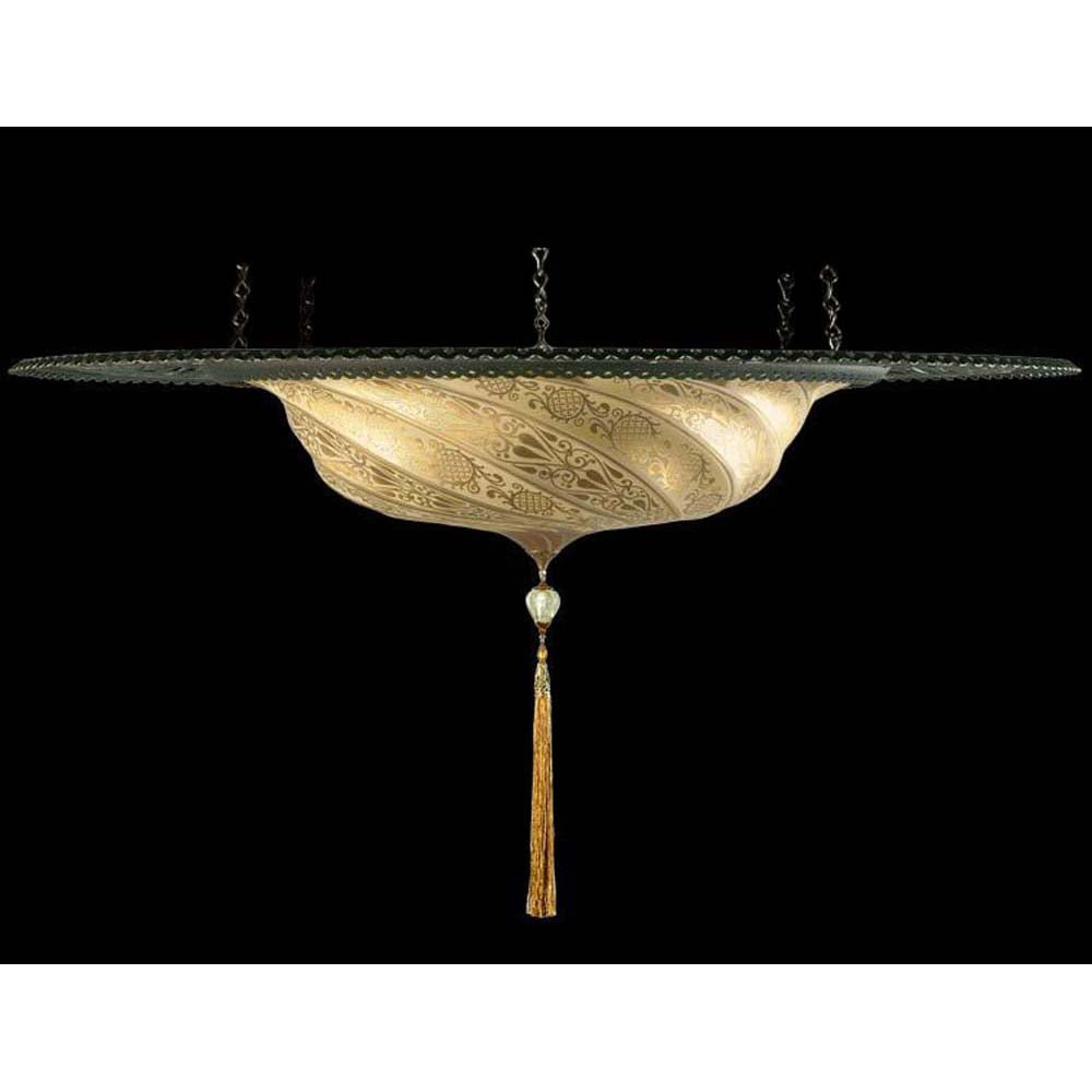 Fortuny G-096-SAC-2 Medium Glass Scudo Saraceno with Decorative Metal Ring Suspended - 37-3/4" - Gold / Classic is backordered and will ship as soon as it is back in stock.